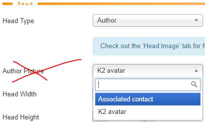 elements. If the author was the K2 avatar in your previous configuration, you need to select it from the list of head