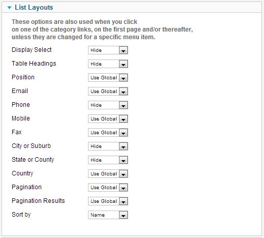 in the demo site, the contacts are presented as a table.