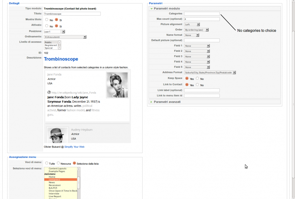 Why i haven't choice categories? I have make a id numver "id18" (menu contact) but give me error: