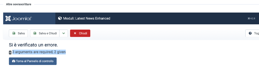 file Latest News Enhanced free error on Joomla 4 : 3 arguments are required, 2 given