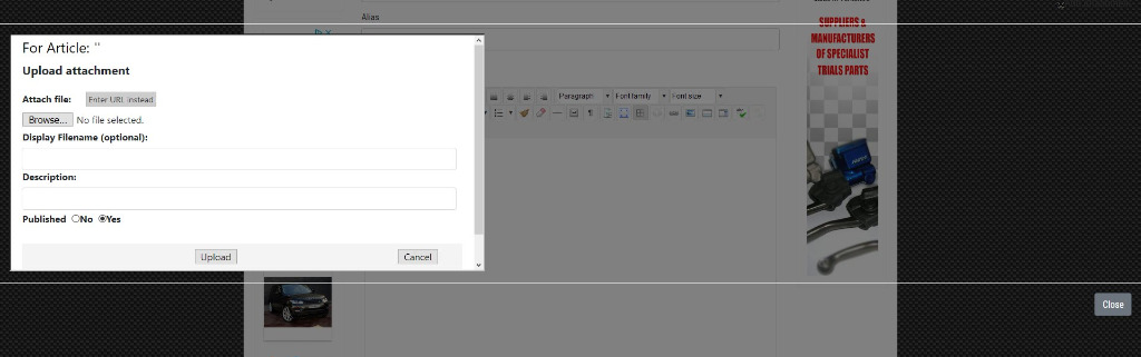 I've recently switched a long standing site to use the Helix 3 Ultimate template. I have a number of users who add articles via the front end, including event results attachments and that bit isn't working properly for them (see attached screenshot).  I forgot to check this bit before the new site went live.