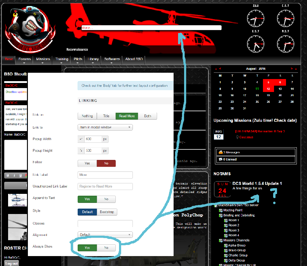 So no link on the news anymore, and a strange in modal window floating above my banner with no possibility to close (but I could click on it to read the readmore part of my article).