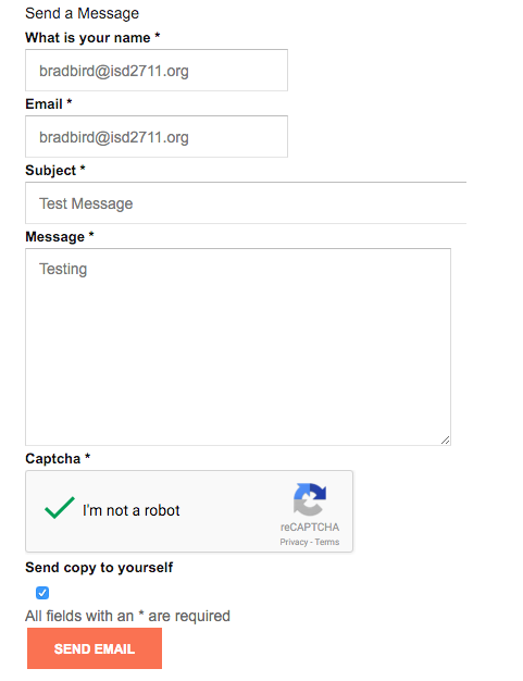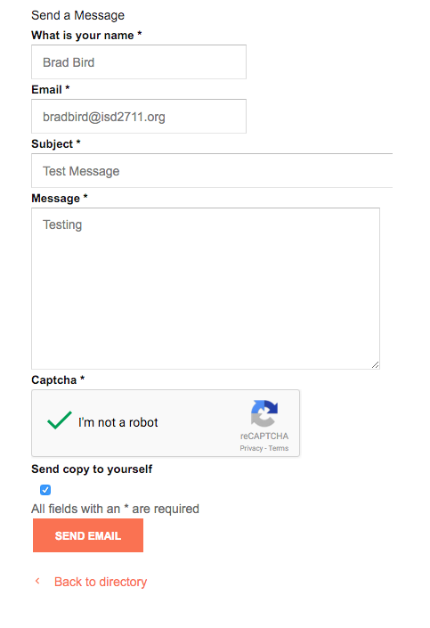 I have set up the Trombinscope Contact Information form successfully with one odd behavior. When a name is typed in the 'Name Field' I receive an invalid address error upon submission. If an email address is typed in the name field, then it is a success.