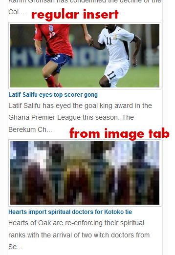 But when i insert the image like its done in main joomla content, it displays correctly.