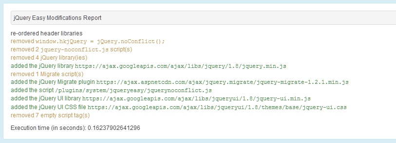 - the plugin removes window.hkjQuery = jQuery.noConflict(); (the first line): either leave it as it is or re-inject that line in the expert area of the plugin or disable the removal of the noConflict code (you may want to try each option).
