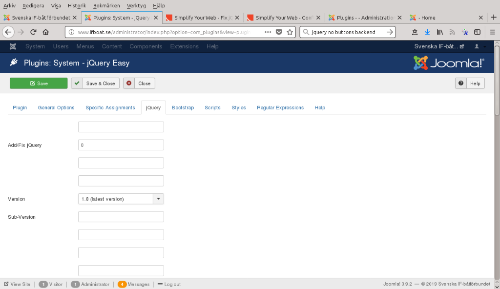 jquery-versions. However, after installing the JQuery Easy the Joomla