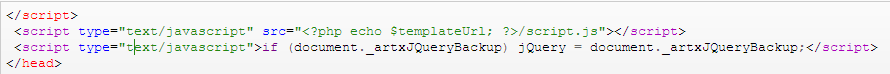 I normally add the GA code just above the closing head tag but after jQE is installed the main template file starts with a closing script tag and ends with a closing head tag: