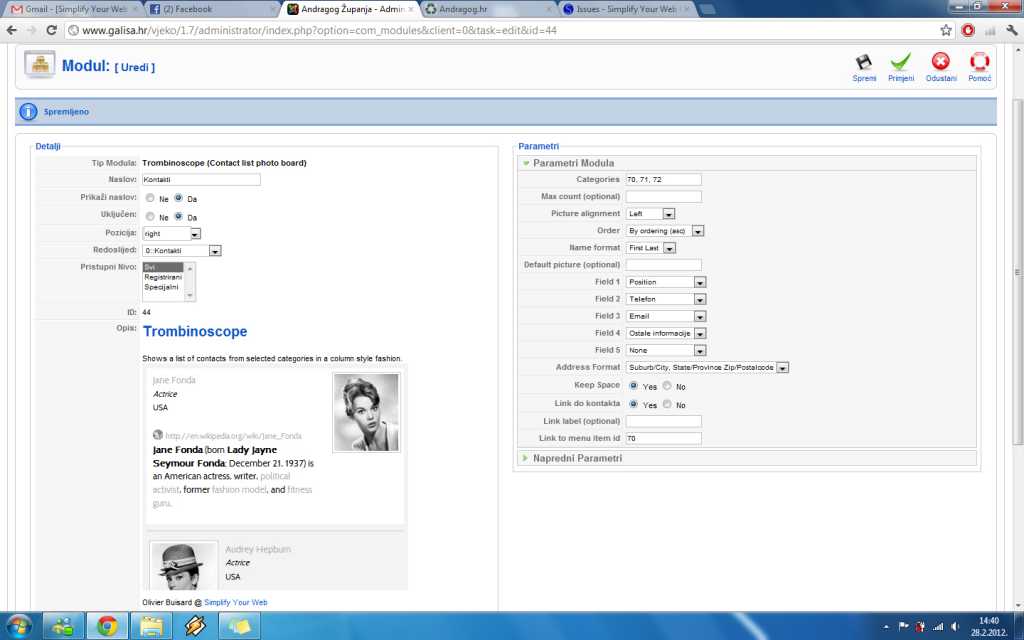 In menu item id is for category id70 ("Kontakti"), and in that id 71 and 72 ("Ravnatelj", "Šefika")